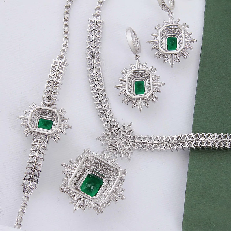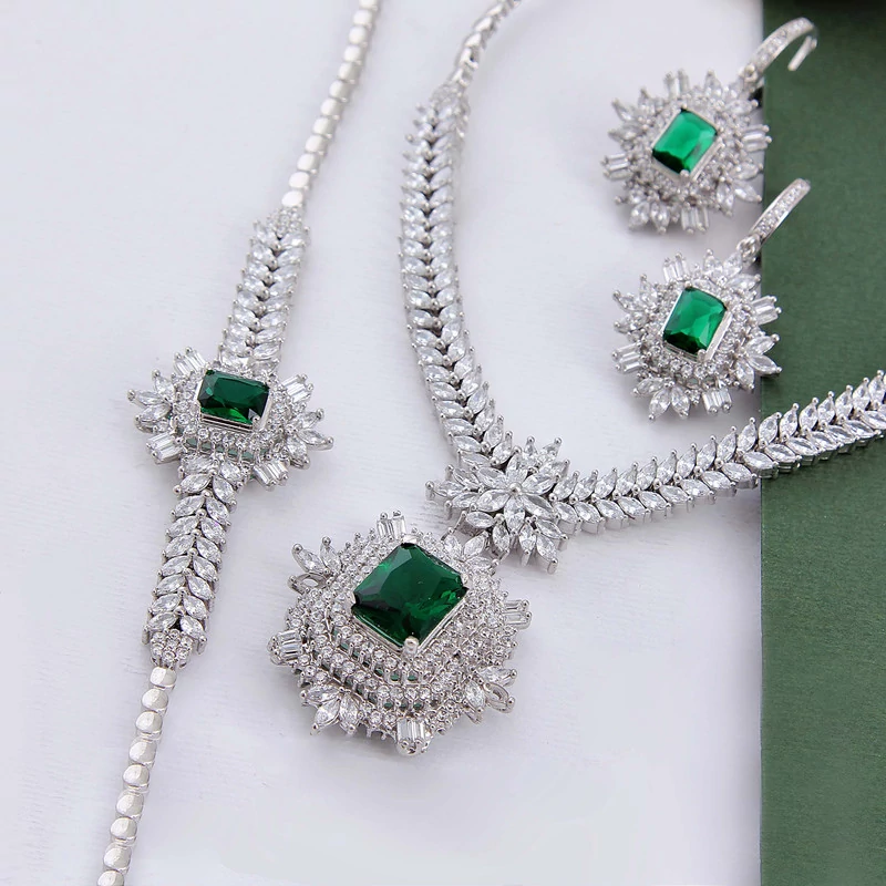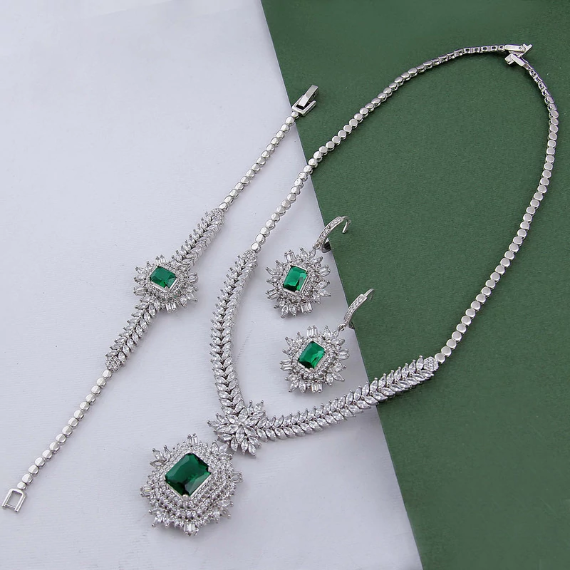 نیم ست نقره زنانه مدل قالب جواهری کوارتز تراش جواهری فول نگین بدون ریزش کد NTR377