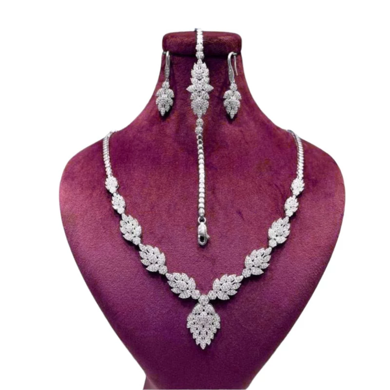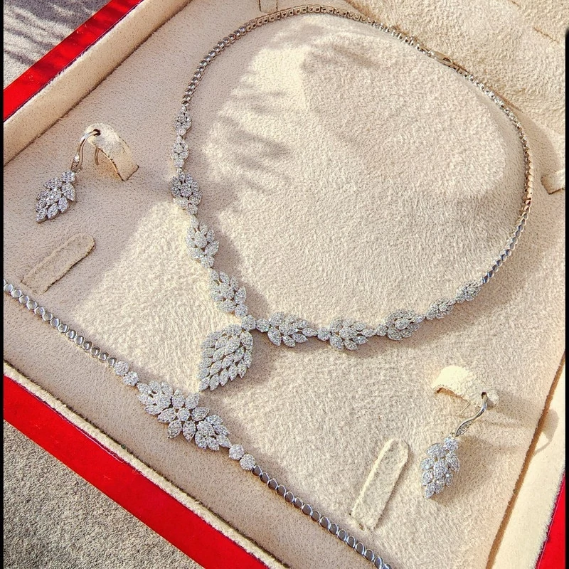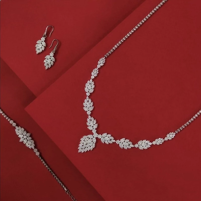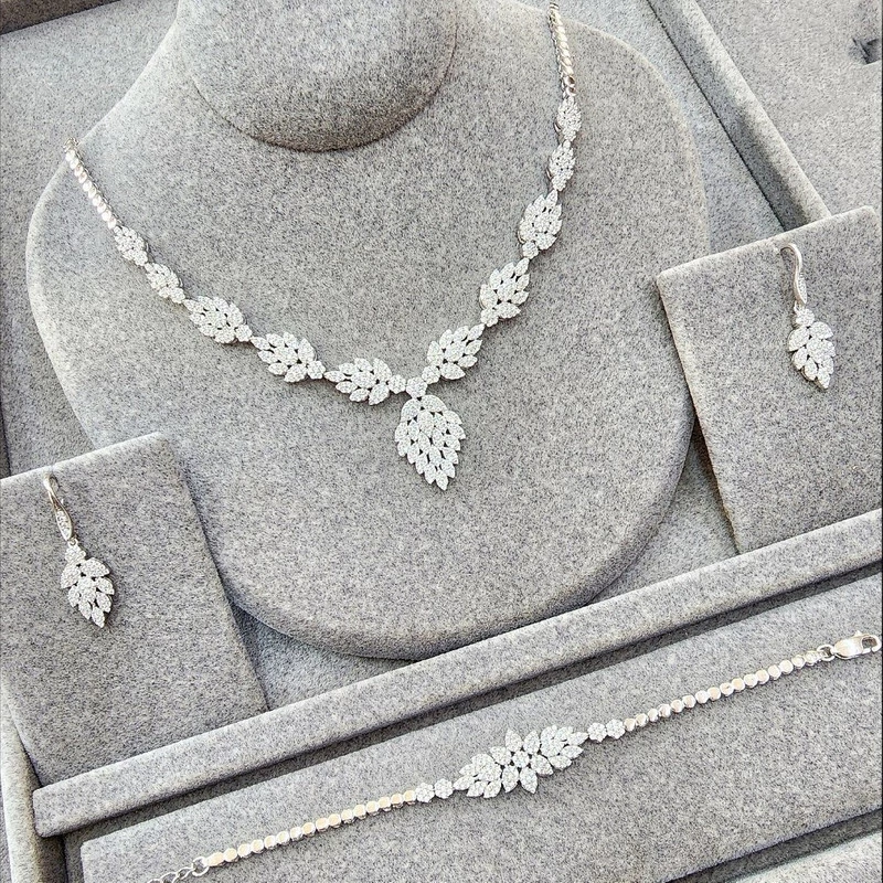 ست نقره زنانه مدل خوشه گندم به عیار 925 ُدارای روکش طلاسفید(رادیوم)می باشد،نگین های بکار رفته برلیان اتمی از جنس زیرکونیوم می باشند،چهار عدد سنگ زمرد آزمایشگاهی طرح اشک به رنگ سبز شفاف در اقلام ست بکار رفته،کیفیت ساخت کار بسیار بالا بوده و در روکش آن از مواد حساسیت زا مانند نیکل استفاده نشده است،روکش طلاسفید و جلوه زیبا و درخشان کار باعث شده از نظر ظاهری تفاوتی با طلا نداشته باشد. نگین ها به روش میکروستینگ مخراج کاری شده اند و در برابر ضربه مقاوم هستند و این محصول داخل جعبه سرویس به عنوان اشانتیون خرید به شما عزیزان ارسال میشود