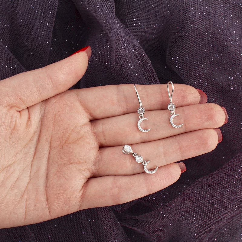 نیم ست نقره زنانه مدل هلال ماه AVN-N2218
