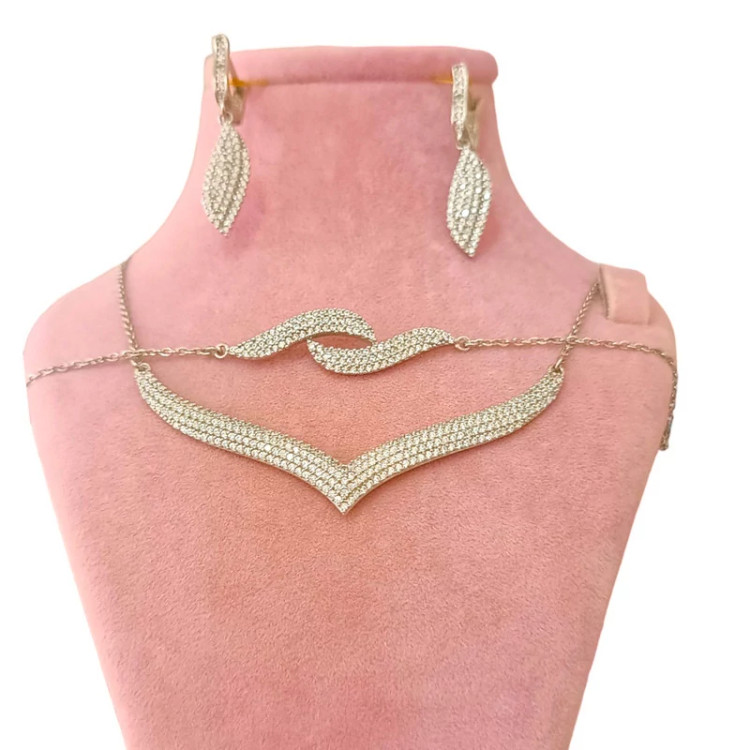 نیم ست نقره زنانه مدل تنیسی نگین دار