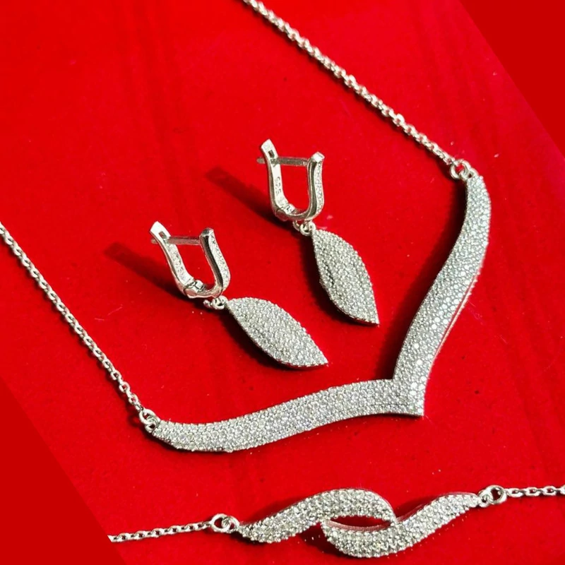 نیم ست نقره عیار925 مدل نگین دار فائز بوده و از همون آبکاری که برای طلا سفید استفاده میشود ، از همون آبکاری برای آبکاری این محصول استفاده شده تا عینا جواهرات بوده و بدون مو زنی با طلا میباشد . این نیم ست دارای گردنبند و دستبند و گوشواره نقره عیار 925 میباشد که برای استفاده به جای طلا و درخشندگی طلا را دارد . این محصول برای شما عزیزان مشتریان دیجی کالا در جعبه جواهرات مخصوص نیم ست به عنوان اشانتیون خرید ارسال میشود .