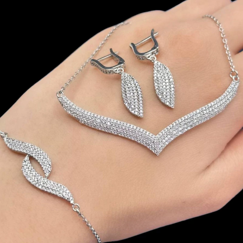 نیم ست نقره زنانه مدل تنیسی نگین دار