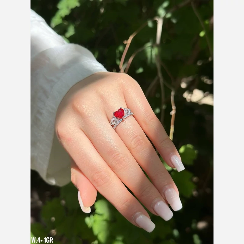 انگشتر نقره قلب جواهری دخترانه و زنانه کادو تولد عروسی عقد با جعبه جواهرات رایگان مخملی