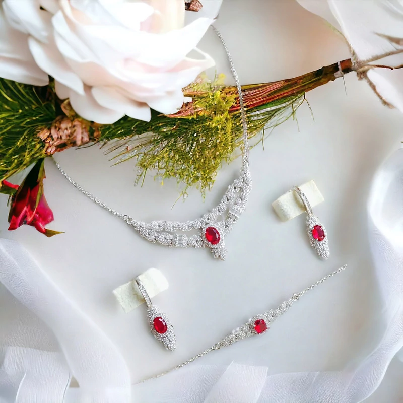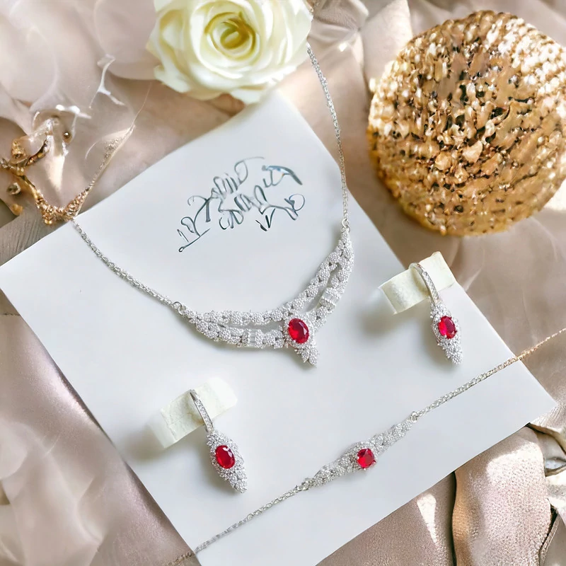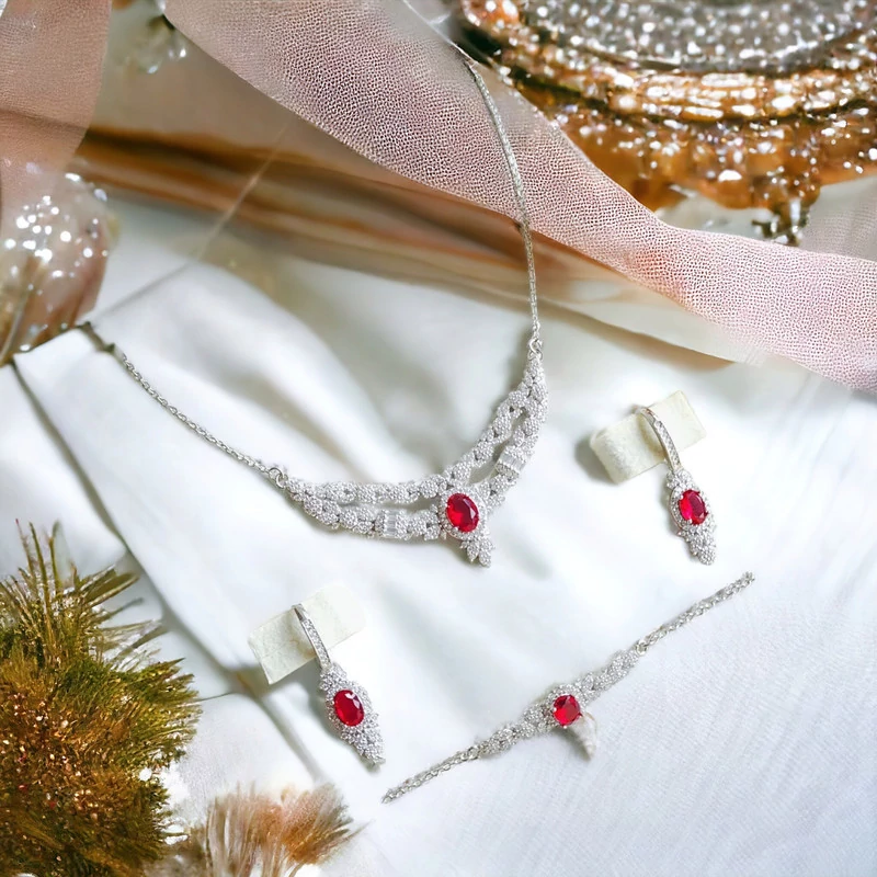 نیم ست نقره زنانه مدل دو ردیف یاقوت