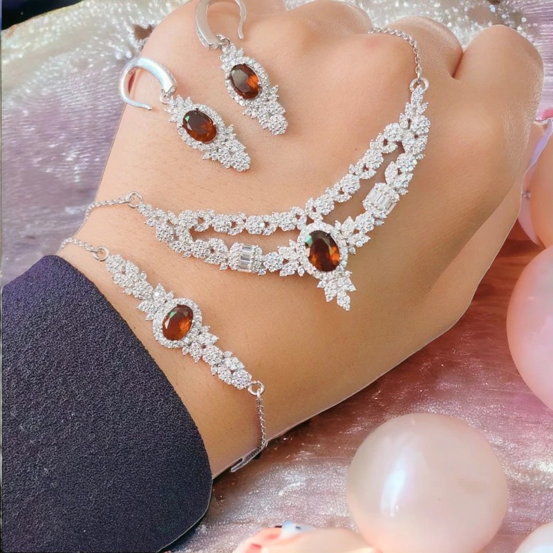 فروشگاه اینترنتی نمایشگاه / مد و پوشاک/ اکسسوری و زیورآلات زنانه و مردانه/ زیورآلات و بدلیجات زنانه/ ست های زیورآلات و بدلیجات/ نیم ست زیورآلات/ نیم ست جواهری، نگین دار و سنگی
