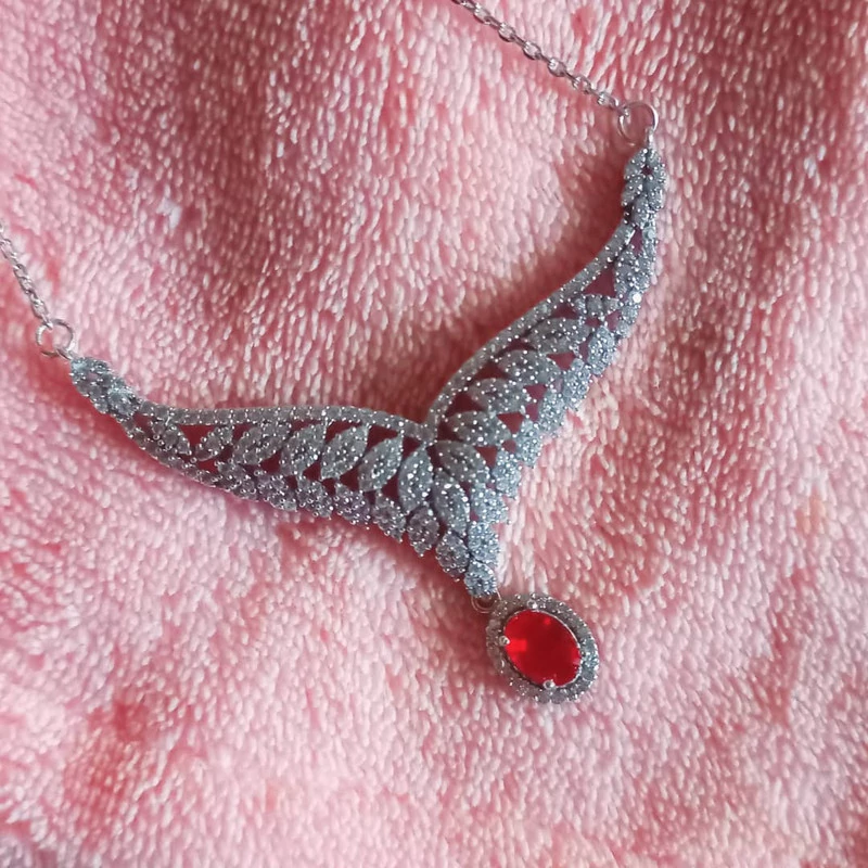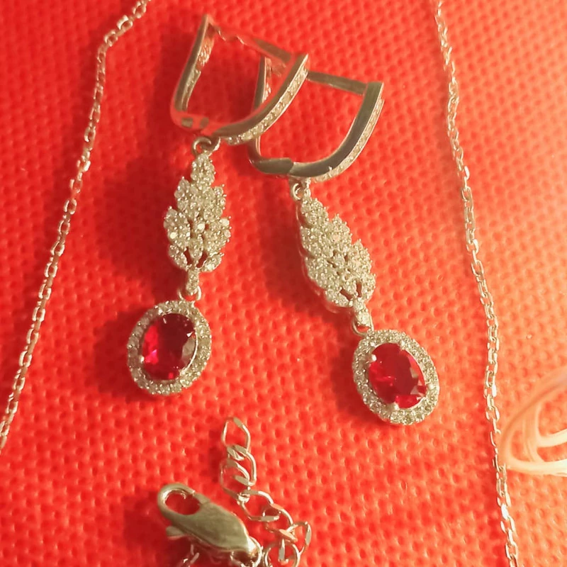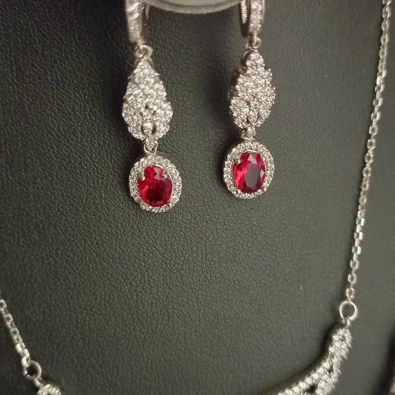 نیم ست نقره زنانه مدل یاقوت کد P2300