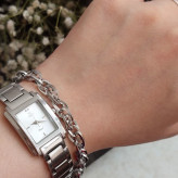 دستبند زنانه دوبل ضخیم استیل نقره ای