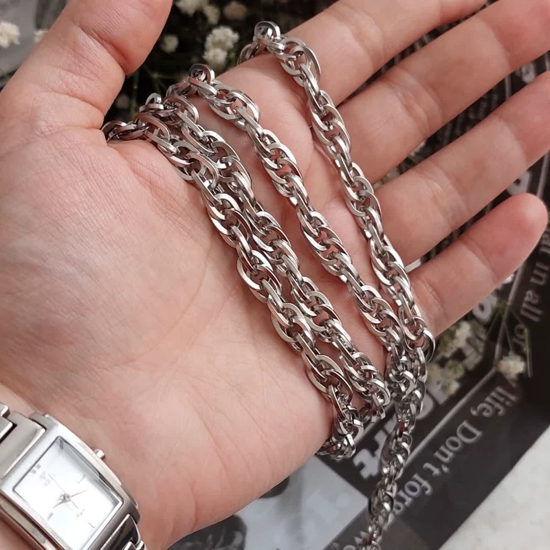 دستبند زنانه دوبل ضخیم استیل نقره ای