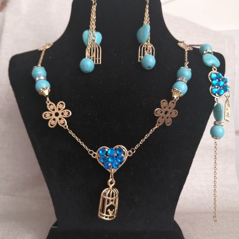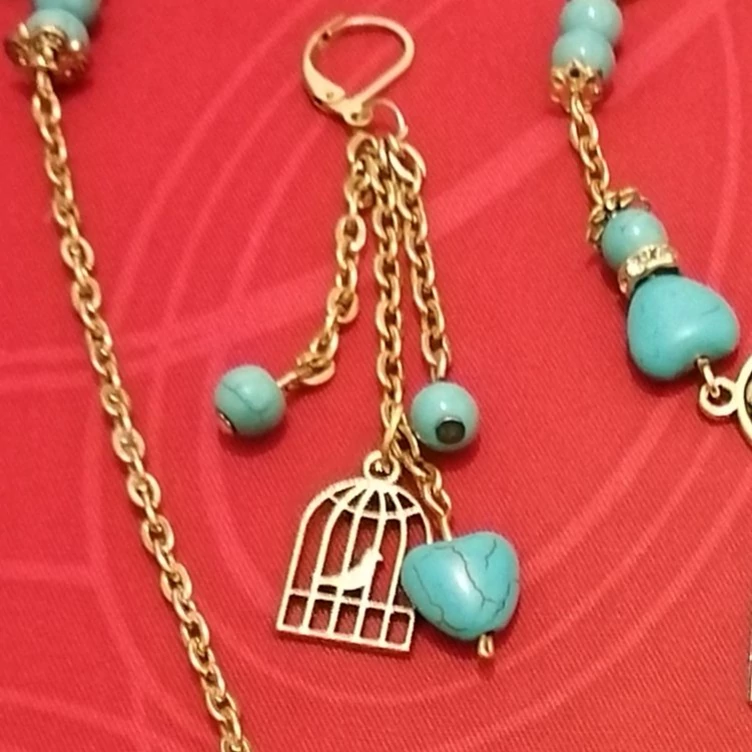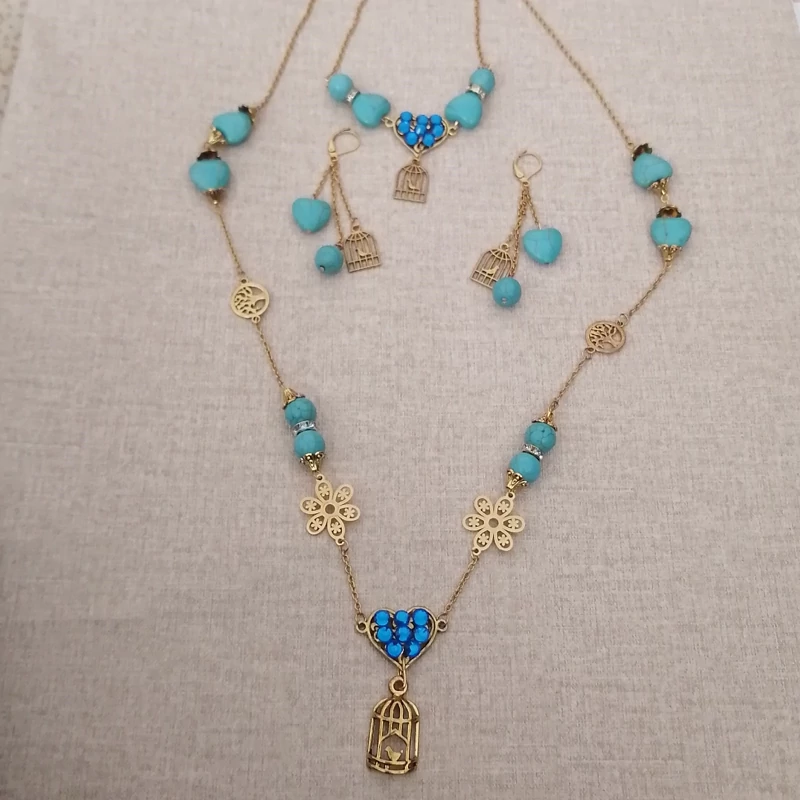 سرویس مرغ آمین با سنگهای فیروزه همراه لحظه های خوبتان، سنگها در رنگهای دلخواه قابل سفارش هستند، رنجیرها و بستها کاملا استیل و رنگ ثابت هستن.