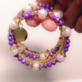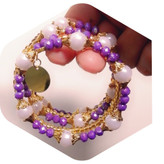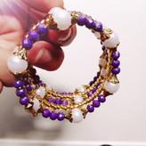 دستبند فنری سنگ بنفش از سنگ بنفش و مونجوق طلایی شیشه ای عالی تهیه شده است