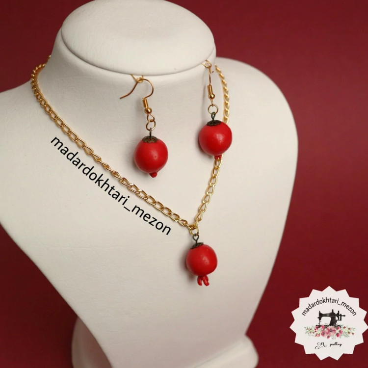 نیمست انار یلدایی شامل گردنبند و گوشواره انار . قبل سفارش موجودی بگیرین. گردنبند دخترانه یلدا. گوشواره دخترانه انار