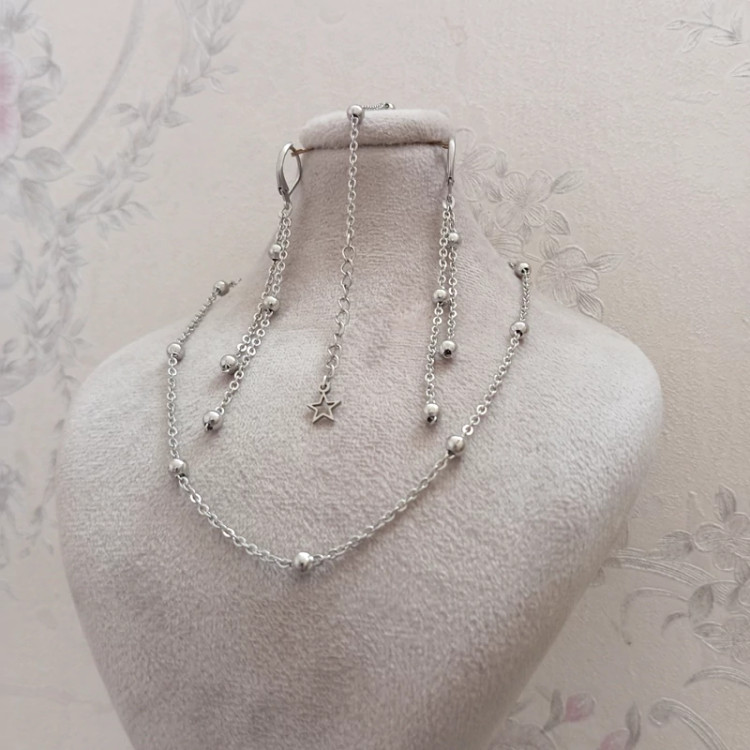 نیم ست زنانه استیل نقره ای مشابه طلا