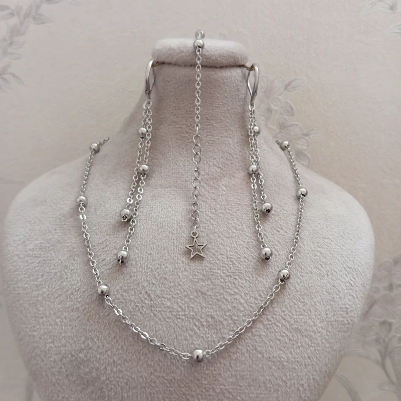 نیم ست زنانه استیل نقره ای مشابه طلا