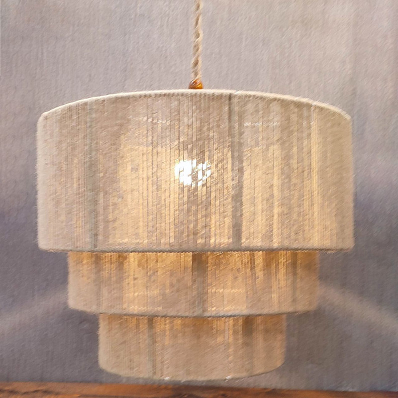 لوستر بالیرن سه طبقه میباشد . فرم لوستر از جنس مفتول درجه یک میباشد . بافته شده از جنس نخ گونی بافت و قابل شستشو میباشد . طبقه بالا 50 سانت. طبقه وسط 35 سانت. طبقه پایین 25 سانت میباشد