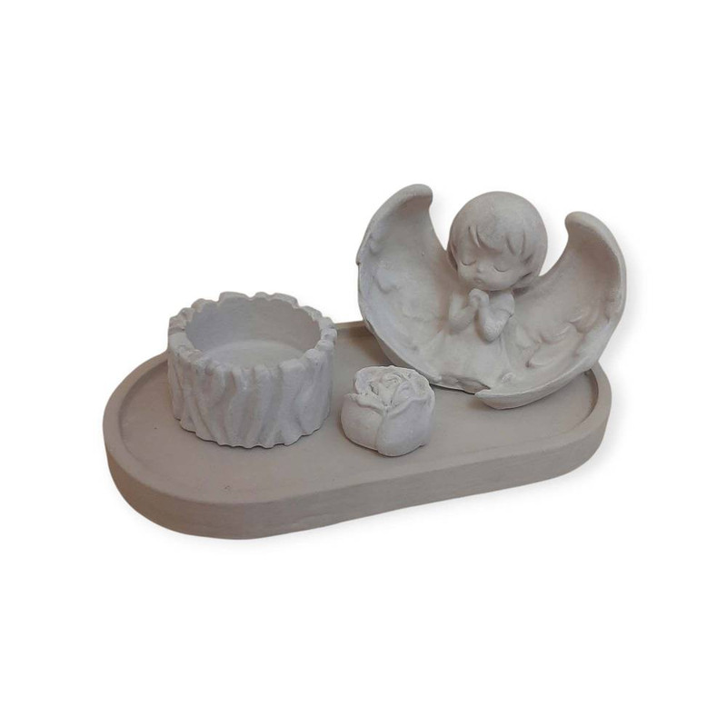 سینی سنگی حاوی جاعودی طرح گل و جاشمعی تنه درخت وهمراه با مجسمه فرشته میباشد. یک محصول زیبا و کارآمد برای منزل و هدیه میباشد. تمام تکه های محصول به صورت جداگانه قابل استفاده میباشند. محصول قابل شستشو میباشد.