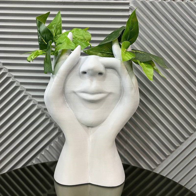 این گلدان از جنس پلی استر و به رنگ سفید میباشد . طرح این گلدان با نام گلدان متفکر مشهور شده است . با توجه به مدرن بودن این گلدان با فضای مدرن و کلاسیک متناسب میباشد .