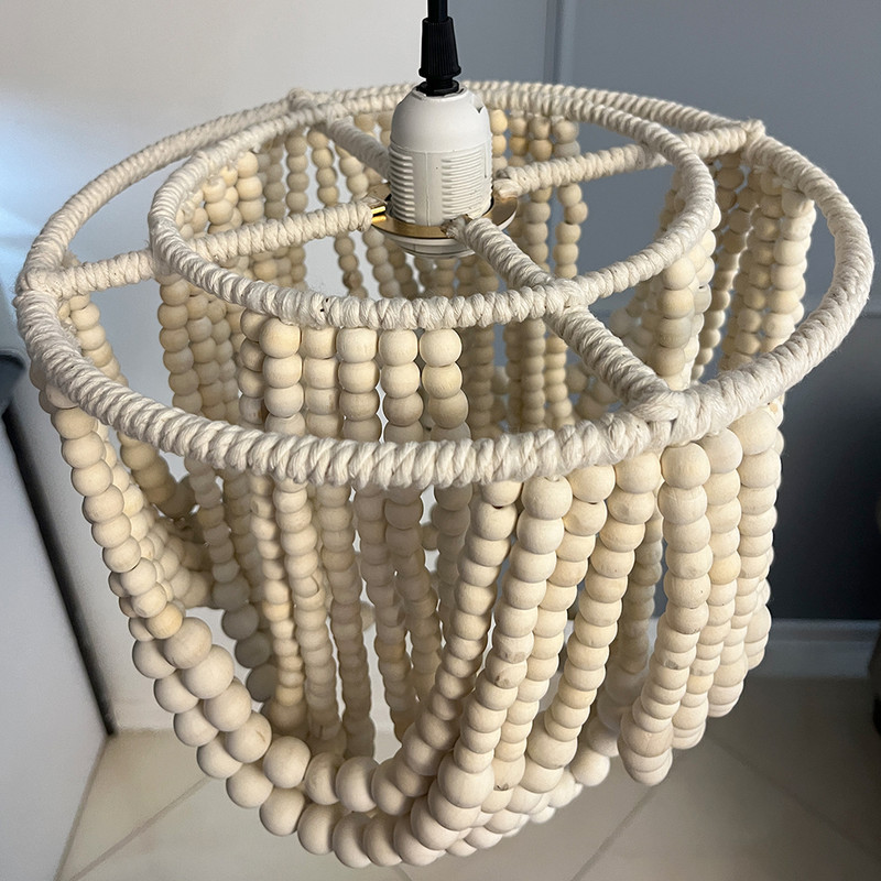 قطر لوستر 40 سانتیمتر و ارتفاع لوستر 30 سانتیمتر است. متریال های مصرفی شامل مهره چوبی ، سازه فلزی و نخ مکرومه میباشد . این محصول به همراه رول بولت سقفی ، 50 سانت سیم ، ترمینال فشاری ، پاتروم و کفی لوستر عرضه میگردد.