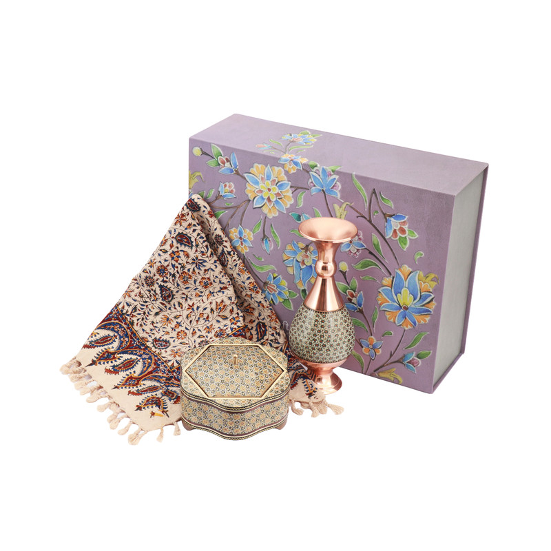 اگر به دنبال یک هدیه خاص، شیک و در عین حال اقتصادی هستید، ست مهتاب 8 گزینهای ایدهآل برای شماست. این پک شامل یک گلدان خاتمکاری شده سایز 25 با طرحی ظریف و اصیل، یک شکلاتخوری چوب و خاتم پروانهای سایز 2 و یک پارچه قلمکار ساده در ابعاد 60×60 سانتیمتر است که در کنار هم، جلوهای گرم و صمیمی از هنر ایرانی را به تصویر میکشند.