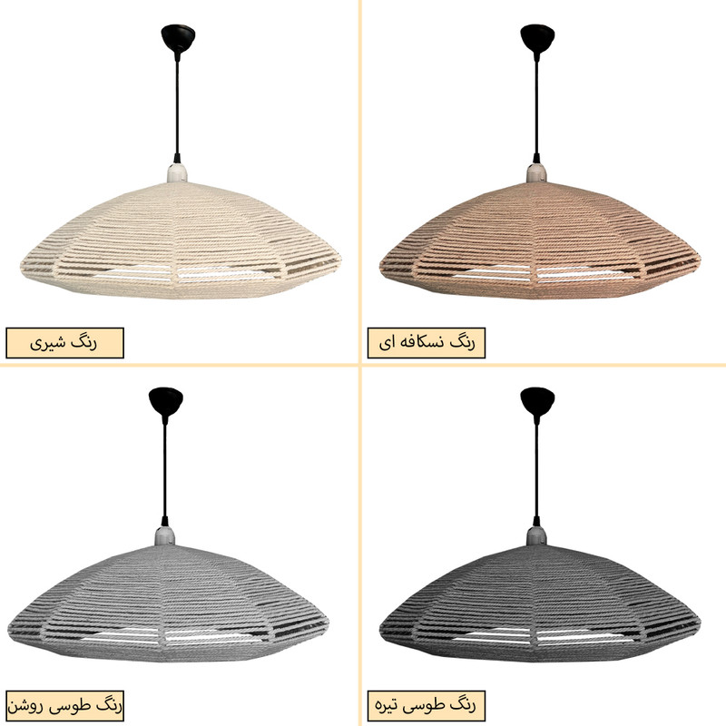 لوستر مکرومه با سایز بزرگ ، فرم خاص و رنگبندی متنوع خود میتواند انتخاب مناسبی برای فضای کافی شاپ ، رستوران و منزل مسکونی باشد . این محصول به همراه رول بولت سقفی ، ترمنیال فشاری ، 50 سانت سیم قابل تنظیم و کفی لوستر و پاتروم عرضه میگردد.