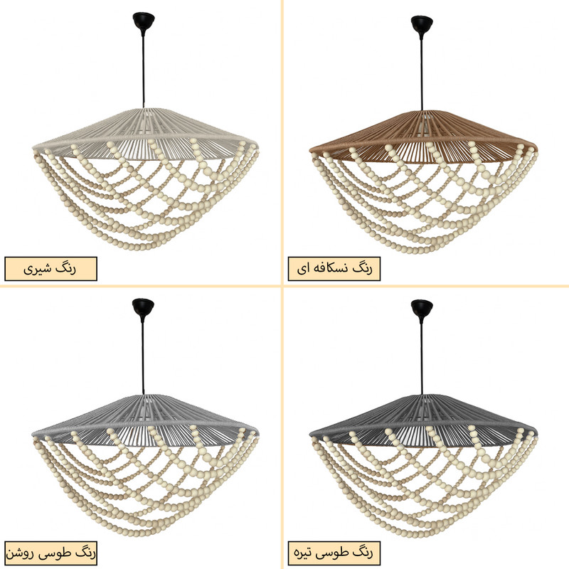 متریال مصرفی در این لوستر نخ مکرومه که به صورت دستساز بافته شده و مهره چوبی طبیعی می باشد . برای انتخاب رنگ مورد نظر لطفا عکس ها را ورق بزنید . همچنین این محصول به همراه کفی لوستر ، رول بولت سقفی ، ترمینال فشاری ، پاتروم و سیم عرضه میگردد.