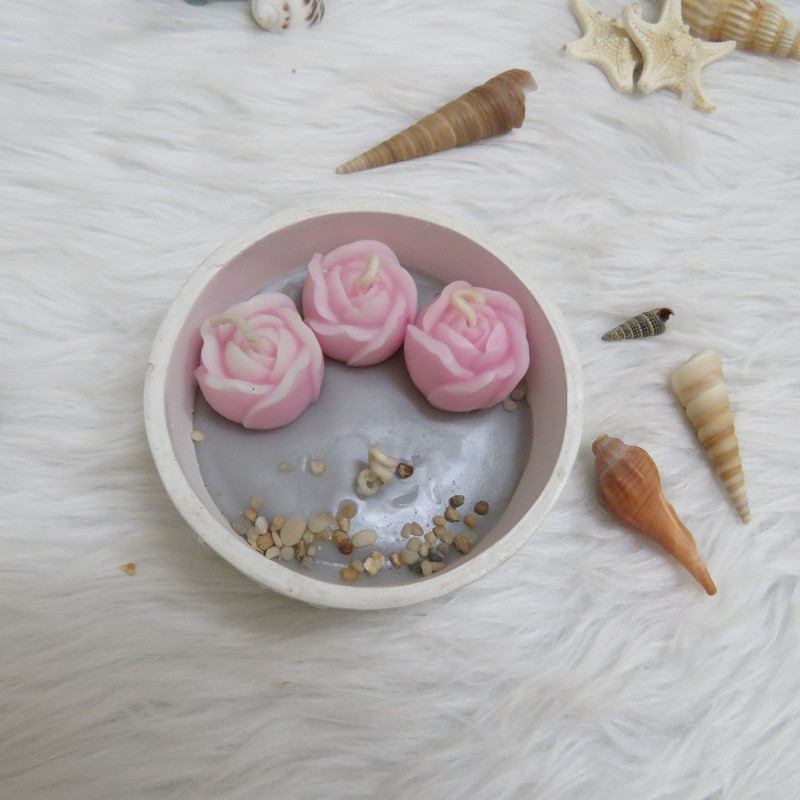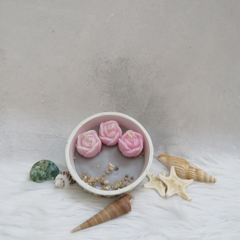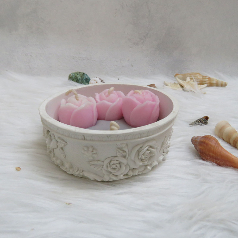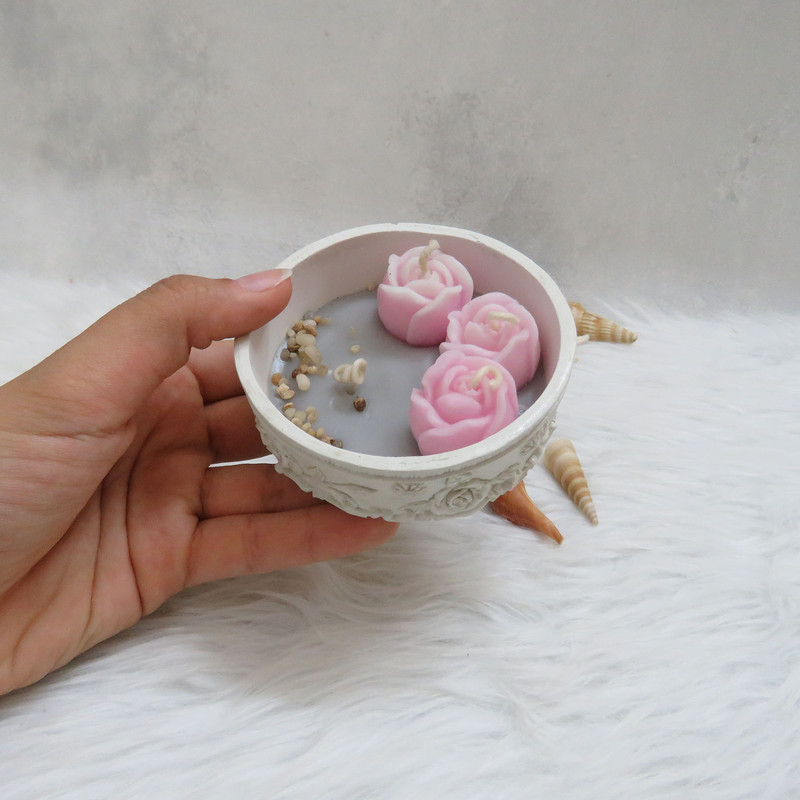 شمع پیاله ای گل یک پیاله با برجستگی های گل رز است و داخل این شات سه عدد گل رز زیبا جای گرفته است.سوخت شمع بدون دوده و بی بو است.این پیاله در ابعاد 8در8در4 تولید میشود.