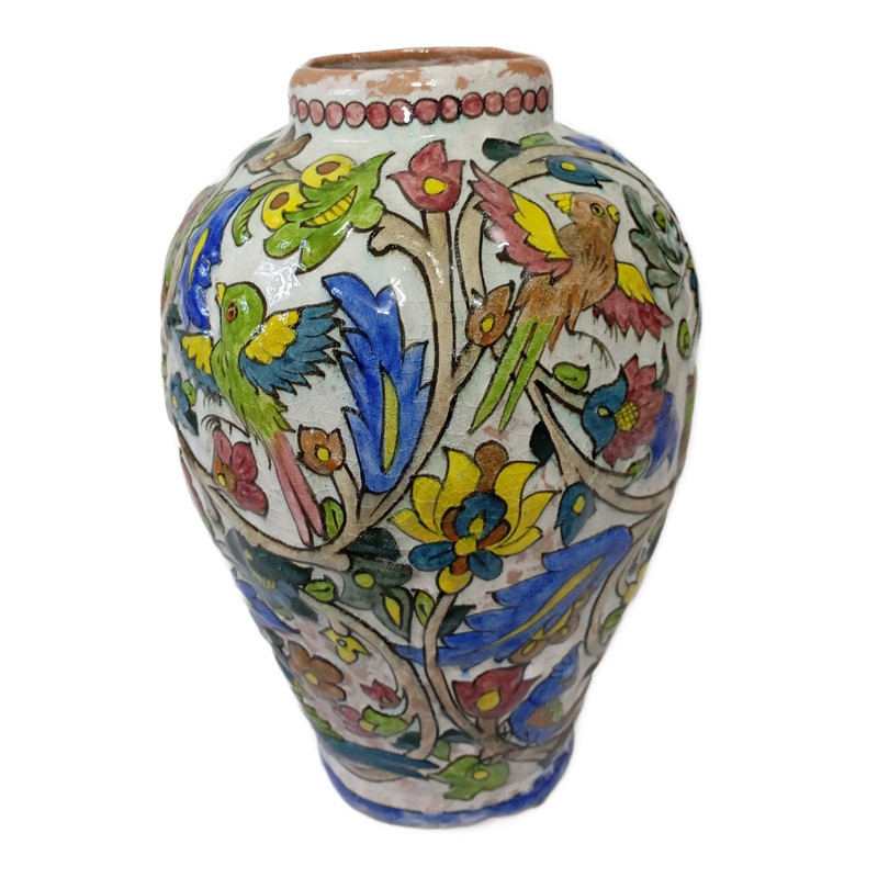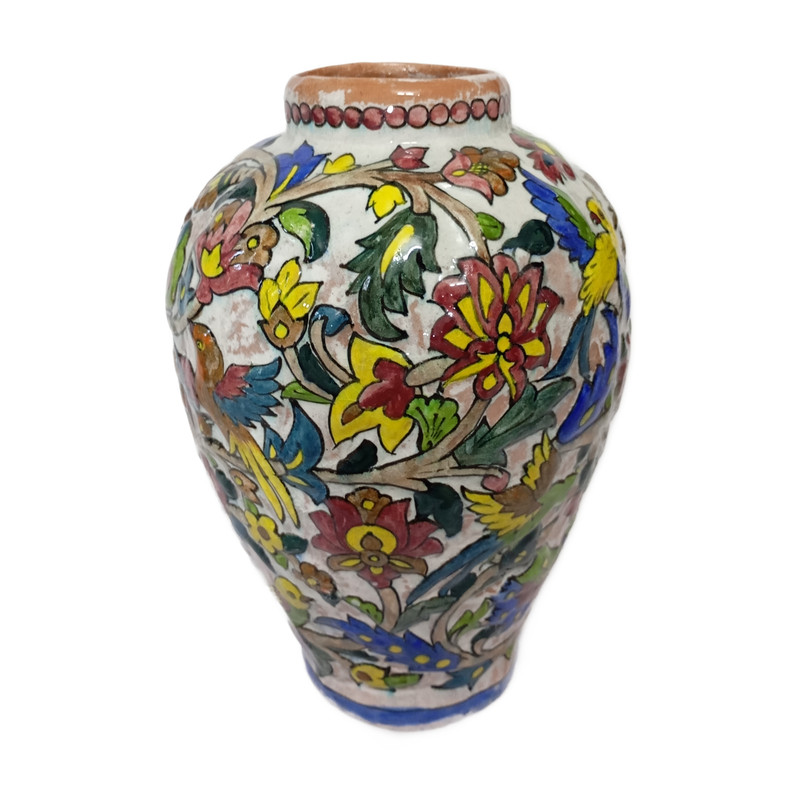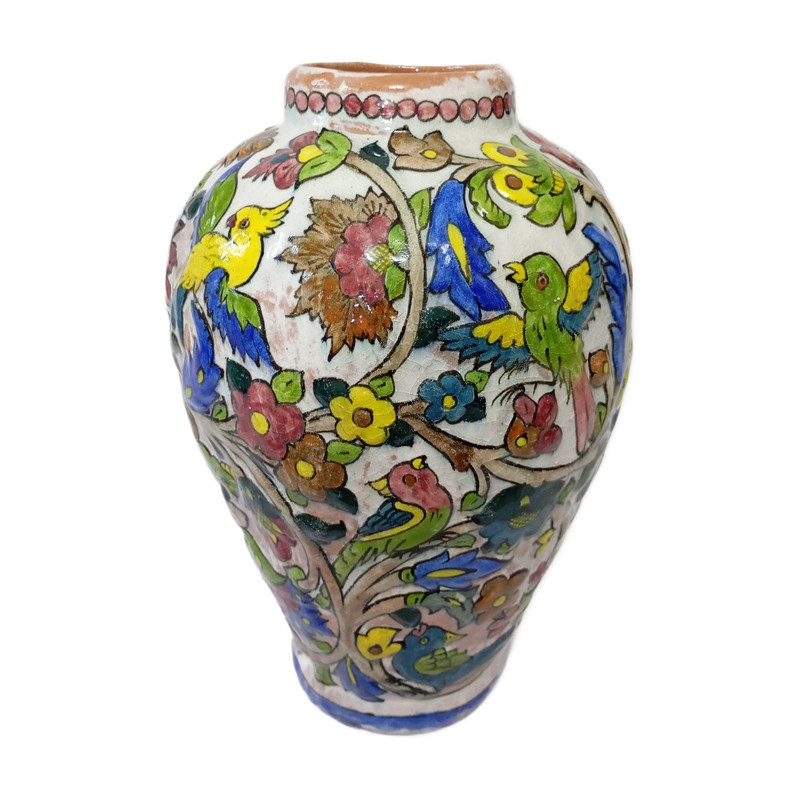 گلدان سفالی نقش برجسته طرح گل و مرغ کد 001