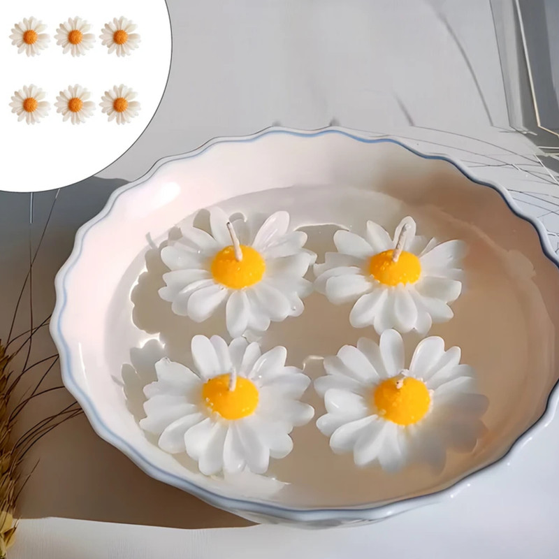 شش عدد گل بابونه با قابلیت شناور مانده روی آب میباشد و زیبا برای دکوراسیون منزل شماست از پارافین و فیتیله کتان خوب تهیه شده است.مناسب برای زیبایی منزل. و روشنایی است .