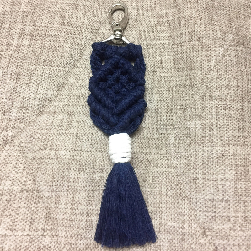 جا کلیدی شاید در نظر اول کالای مهمی به نظر نیاید اما یک اکسسوری زیبا و جذاب برای کلیدها است. اگر سوئیچ ها و کلیدها همراه با جا کلیدی باشند، درصد گم شدن آنها کاهش پیدا می کند. این اکسسوری بافتنی و کار دست است و با نخ کتان مکرومه درجه یک بافته شده اند. زیبایی فوق العاده ای دارد و می توان از آن به عنوان آویز کیف، لباس و... نیز استفاده کرد.