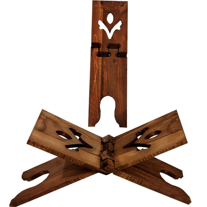 رحل قرآن چوبی قهوای طرح لاله کوچک کد 104046