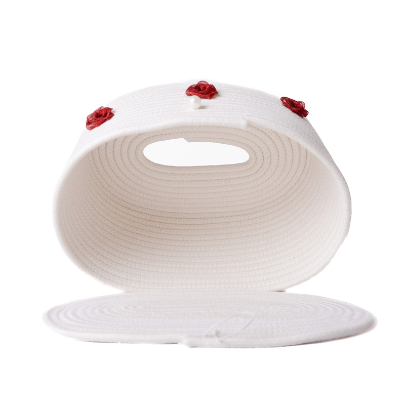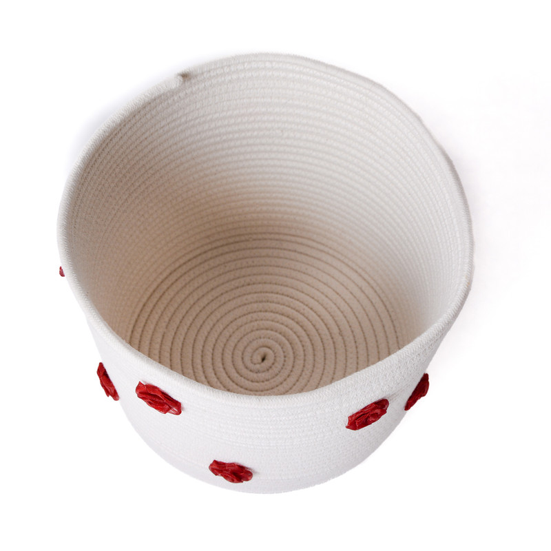 این محصول از رشته های به هم دوخته شده قیطان تولید شده و از جنس نخ پنبه میباشد و قابل شستشو داخل لباسشویی هم هست .تفاوت رنگبندی در رنگ سطل و دستمال میباشد و رنگ گل ها در تمام تنوع ها زرشکی هستند و تصویر اصلی سفید میباشد.