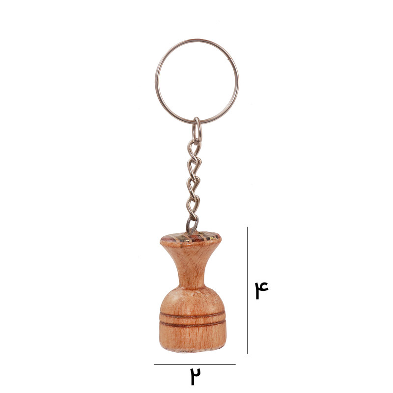 مشخصات فیزیکی: این سرکلیدی، از چوب مرغوب ساخته شده و با طرح تنبک و اجرای دقیق خاتمکاری تزئین شده است. طراحی جمعوجور و سبک آن، حمل و استفاده روزانه را آسان میکند. زنجیر و حلقهی فلزی آن، اتصال ایمن به کلیدها یا کیف را تضمین میکند و پوشش چهار لایه ای از پلی استر روی تمام سطوح کار دوام و ماندگاری را تضمین میکند.