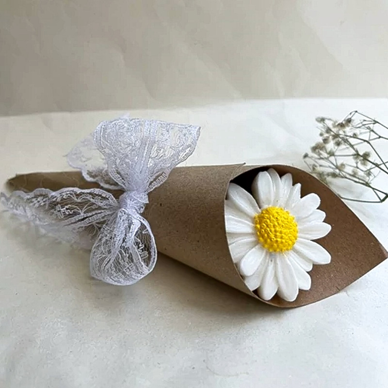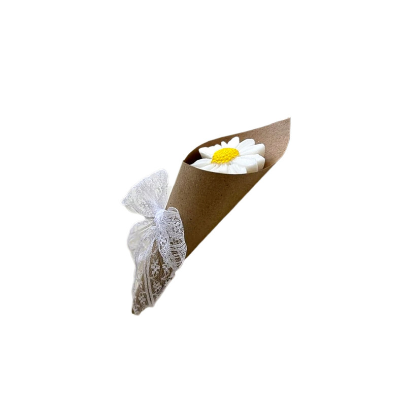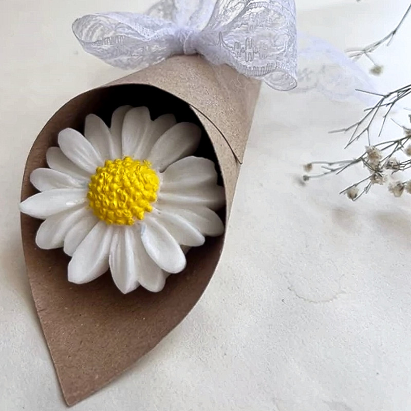 کار شامل یک عدد شمع طرح بابونه میباشد که با کاغذ گراف به صورت پاکتی و تور سفید تزئین شده است اختلاف چندین درجه حتما در نظر گرفته شود به سایز و ابعاد کار موقعه خرید دقت بفرمایید