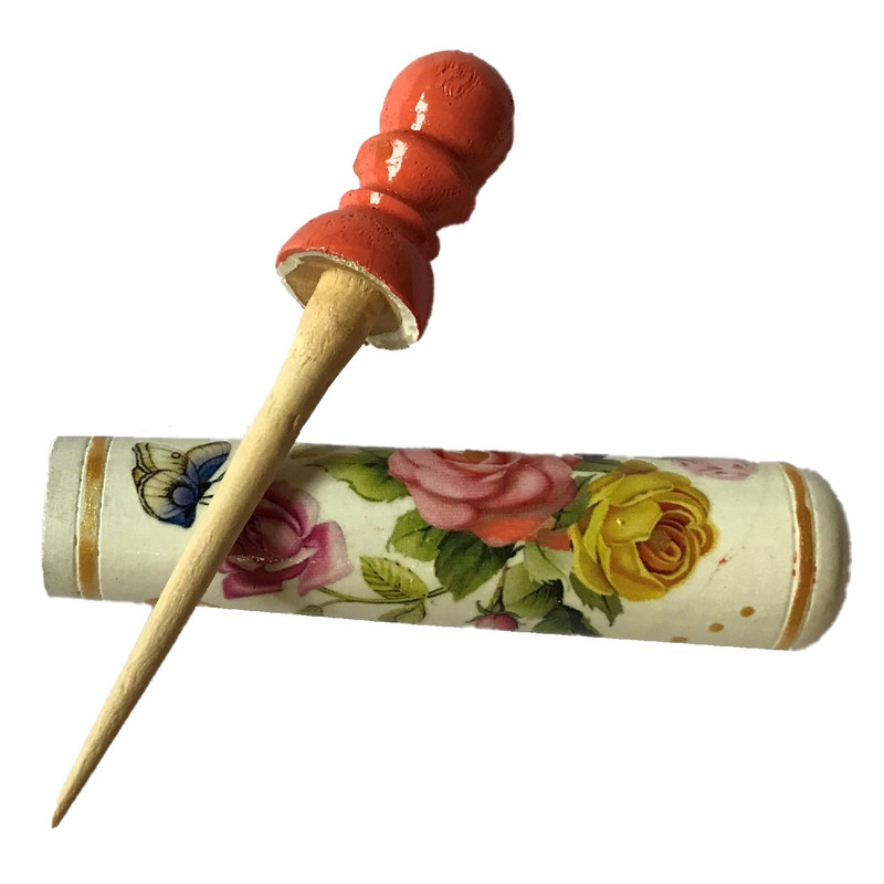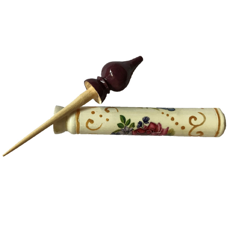 این سرمه دان زیبا یکی از صنایع دستی می باشد که از تراش و شکل بخشیدن به چوب در اثر حرکت دورانی دستگاه خراطی حاصل میشود. در مراحل بعدی با سمباده کشی و رنگ آمیزی کار تکمیل می شود. این مدل سرمه دان ها به سرمه دان مدادی معروف هستند و به دلیل شکل مخروطی, درب آن ها به راحتی محکم می شود در نتیجه احتمال ریختن سرمه در کیف لوازم آرایش وجود ندارد.