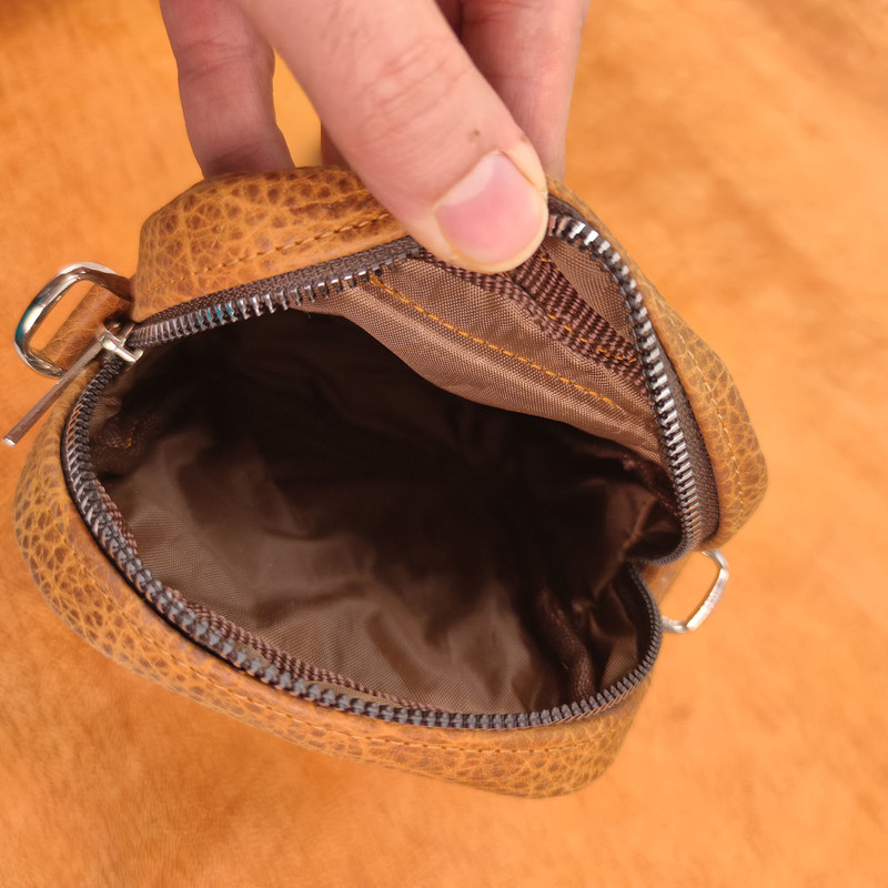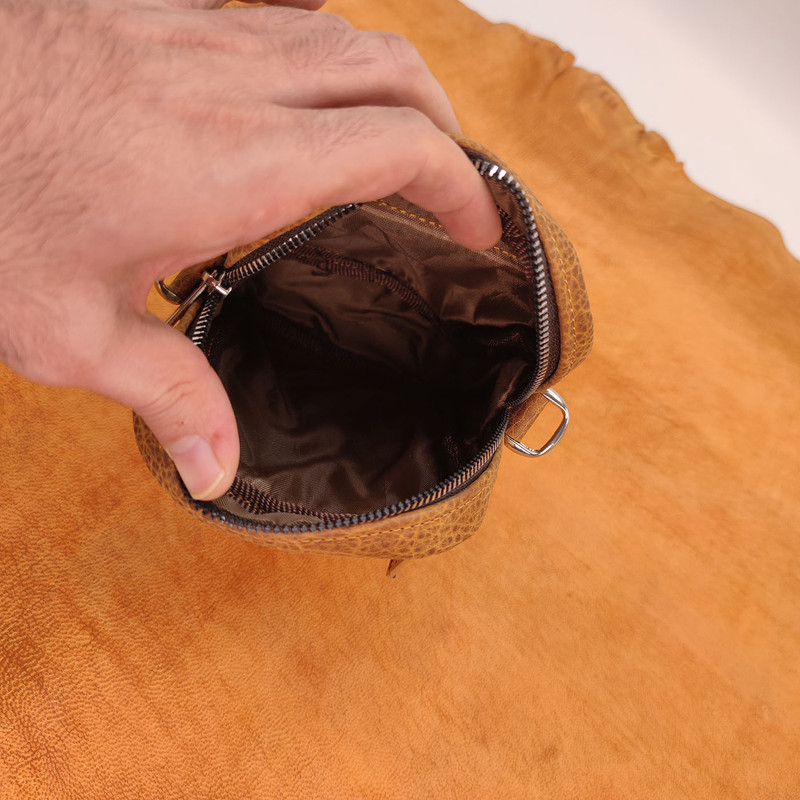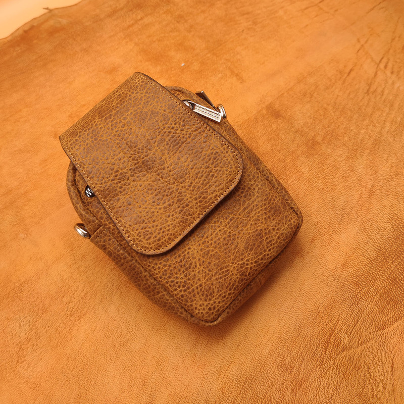 کیف دوشی از چرم طبیعی گاوی ساخته شده و از یزاق الات درجه یک در این کیف استفاده شده است . مناسب برای حمل شارژر و عینک ، موبایل و....... می باشد .