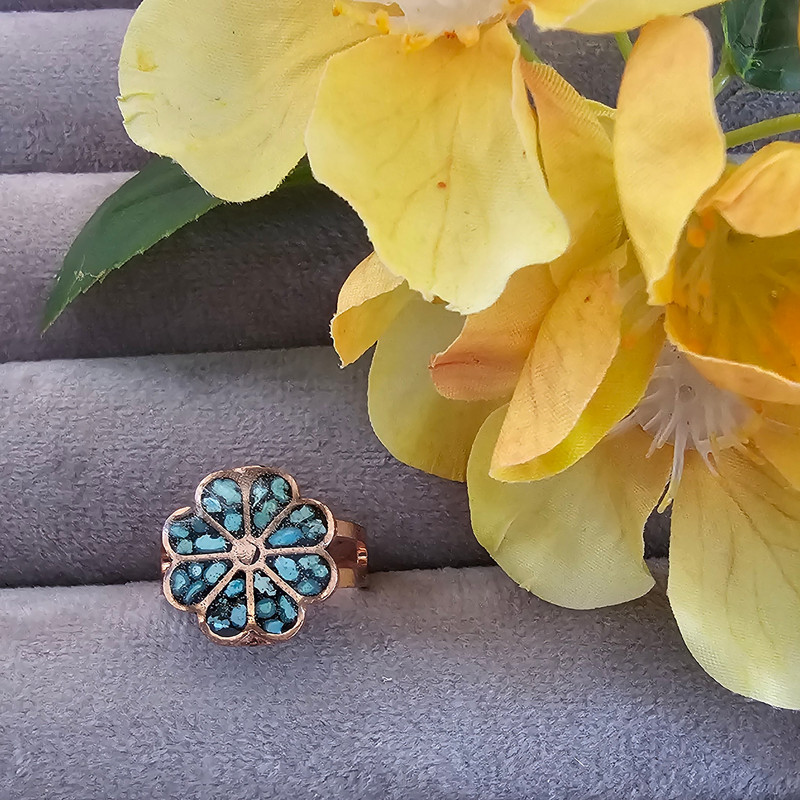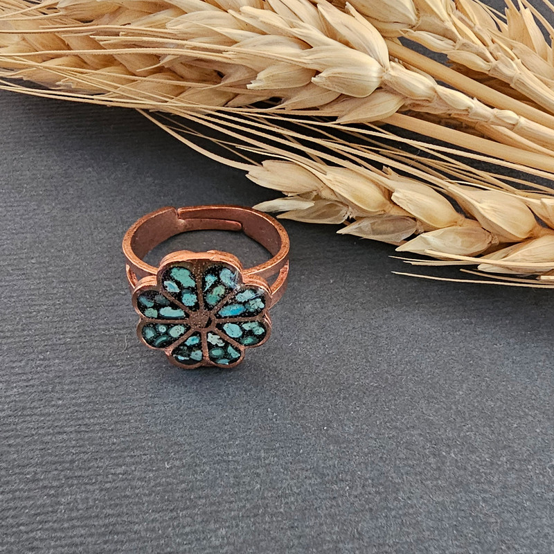 این انگشتر از جنس مس خالص تهیه شده است. سایز انگشتر شماره 17 و به محیط 57 میلیمتر می باشد و تا دو سایز قابلیت بزرگ شدن را دارد و قابل تنظیم است. فلز مس دارای خواص آنتی اکسیدانی است که از افزایش سمیت در بدن توسط یون های آزاد و رادیکال ها جلوگیری می کند. خواص ضد پیری دارد و احساس جوانی و شادابی و آرامش خاطر را به شما هدیه میکند. مس از بروز غلظت خون جلو گیری می کند و جریان خون شدت می یابد . استفاده از فلز مس از طریق تعریق ، کمبود آهن بدن فرد را تامین می کند و به مرور ، از درد مفاصل می کاهد.