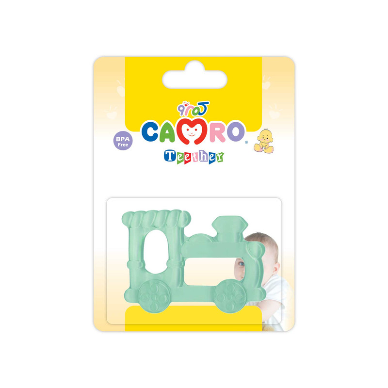 دندانگیر برند «کمرو» با مدل قطار دارای ابعاد 6 × 8 سانتیمتر بوده و از بستهبندی جمعجوری برخوردار است. این دندانگیر با جنس سیلیکونی نرم برای آرامکردن درد لثه بسیار مفید است. در این مدل، مایع خنککننده به کار نرفته است. به طور کلی اساس کار این دندانگیر بر روی برجستگیهایی است که روی آن ایجاد شده است. تنها کافیست دندانگیر را به مدت 5 دقیقه در آب بجوشانید تا استریل شود و پس از خنکشدن، آن را در اختیار نوزاد قرار دهید. پس از هر بار استفاده جهت رعایت اصول بهداشتی دندانگیر را بشویید.