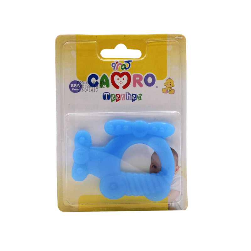 دندانگیر برند «کمرو» با مدل هلیکوپتر دارای ابعاد 6 × 8 سانتیمتر بوده و از بستهبندی جمعجوری برخوردار است. این دندانگیر با جنس سیلیکونی نرم برای آرامکردن درد لثه بسیار مفید است. در این مدل، مایع خنککننده به کار نرفته است. به طور کلی اساس کار این دندانگیر بر روی برجستگیهایی است که روی آن ایجاد شده است. تنها کافیست دندانگیر را به مدت 5 دقیقه در آب بجوشانید تا استریل شود و پس از خنکشدن، آن را در اختیار نوزاد قرار دهید. پس از هر بار استفاده جهت رعایت اصول بهداشتی دندانگیر را بشویید.