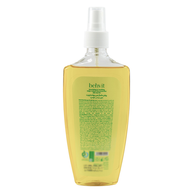 روغن ماساژ بدن بچه حاوی آلوئه ورا بطور ویژه برای مراقبت ملایم و تغذیه ی پوست حساس نوزاد طراحی شده است. این ترکیب شامل روغن زیتون ، روغن بادام شیرین و دی پانتنیل تری استات است که باعث آبرسانی عمیق و تسکین پوست می شوند.به دلیل وجود ویتامین E این روغن لطافت و اثر آرامش بخشی را برای پوست دارد، عطر ملایم آلوئه ورا نیز تجربه ی خوشایندی برای والدین و نوزاد در زمان ماساژ به ارمفان می آورد