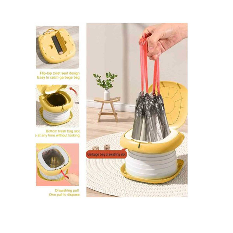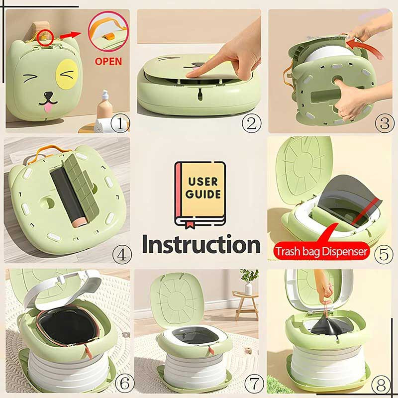در داخل توالت فرنگی آکاردئونی کیسه زباله مخصوص قرار دارد و استفاده از این محصول را به امری کاملا بهداشتی تبدیل می کند.نشیمن محصول دارای فوم نرم جهت راحتی بیشتر کودک است.مناسب برای 18 ماهگی به بعد است.تا 50 کیلوگرم قابلیت تحمل وزن دارد.کیسه ای مخصوص برای حمل آسان و بهداشتی آن در کنار محصول ارائه می گردد.در قسمت زیرین کالا 6 پایه ضد لغزش تعبیه شده اند. امنیت کودک در صورت استفاده از این محصول به خطر نمی افتد.دستگیره ای جهت حمل آسان و آویز کردن محصول دارد.در چهار رنگ جذاب سفید، سبز، صورتی و زرد ارائه می گردد.