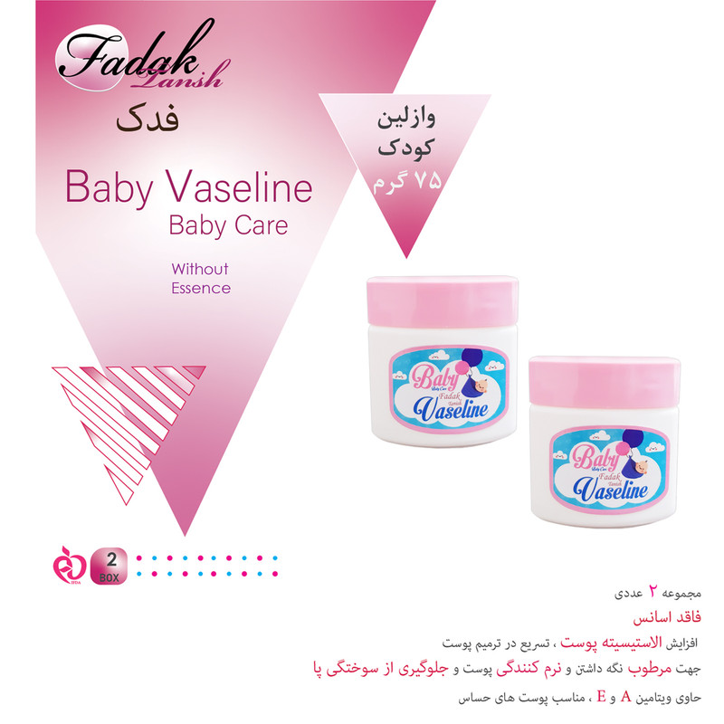 پوست کودکان به خاطر تازگی، ظرافت خاص و لطافت نسبت به بزررگسالان، نیاز به محصولات ویژهای دارد که در فرمولاسیون آنها می بایست رطوبت طبیعی، عدم حساسیت، نداشتن اسانس و ... وجود داشته باشد. در متریال وازلین فدک تانیش ترکیباتی کاملا ایمن و مطمئن به کار رفته است.