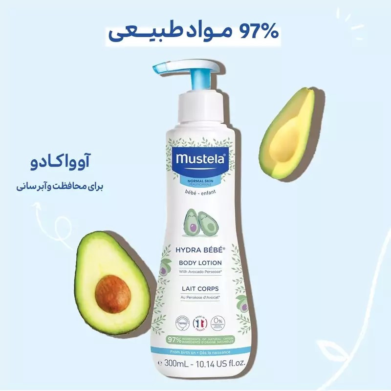 لوسیون مرطوب کننده بدن موستلا رطوبت فوری و طولانی مدت را برای پوست کودک شما فراهم می کند.مواد تشکیل دهنده گیاهی شامل روغن جوجوبا، روغن آفتابگردان، ویتامین E و F، روغن بادام شیرین، کره شیا و امبت مافرمول غیر چرب آن به سرعت نفوذ می کند و پوست را به صورت ابریشمی صاف می کندترکیب 97٪ مواد طبیعی.فاقد پارابن، فتالات و فنون سیتانول استبه ویژه برای کاهش خطر واکنش های آلرژیک آماده شده استتست شده تحت کنترل متخصصین پوست و اطفال.افزایش قابل توجه آب رسانی به پوستافزایش هیدراتاسیون بعد از یک ساعت: 51٪افزایش هیدراتاسیون پس از 8 ساعت: + 25٪ → هیدراته سریع و طولانی مدتروش مصرف: بعد از هر بار استحمام و نیز صبح و شب مقداری از لوسیون را روی پوست تمیز بدن نوزاد مالیده و ماساز دهید تا جذب شود.