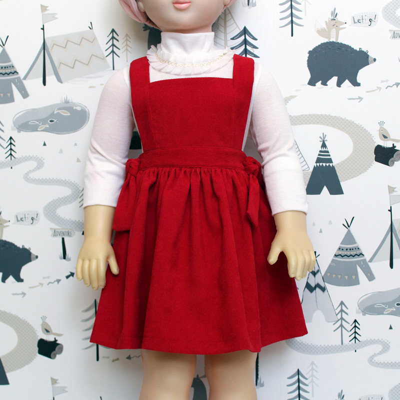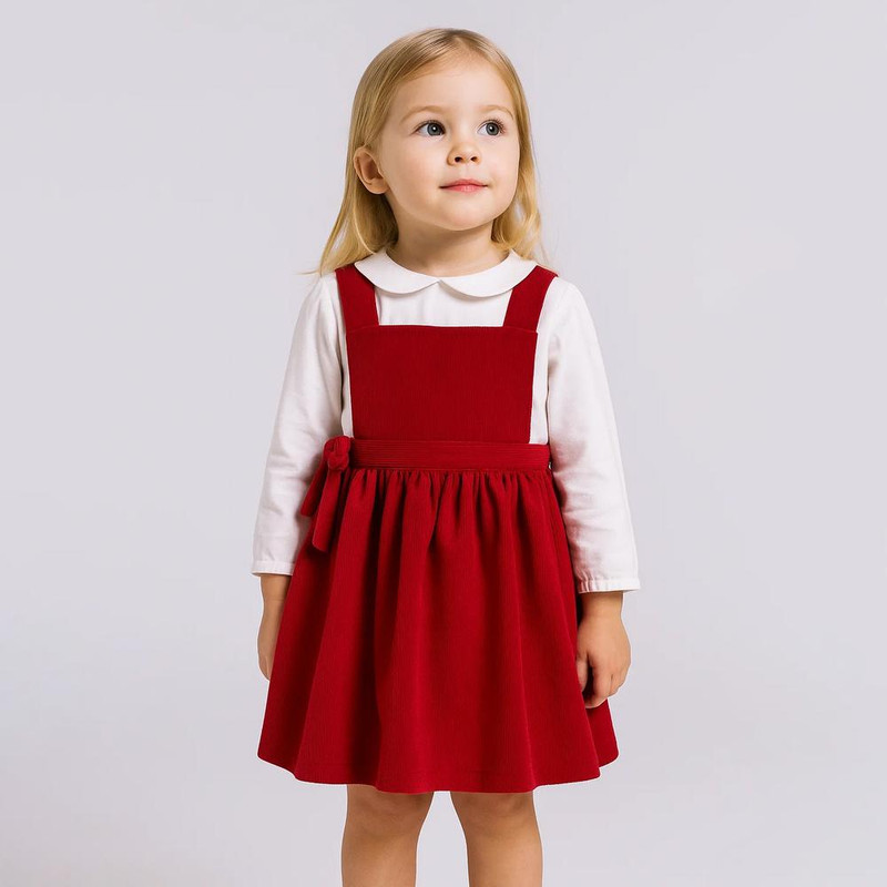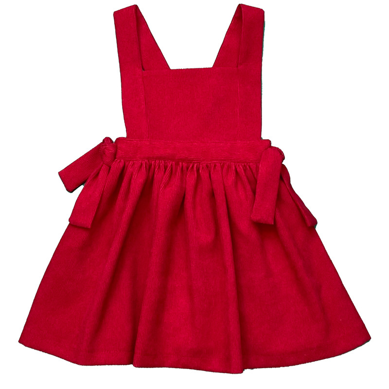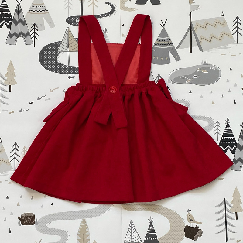 سارافون دخترانه آیلار طراحی مینیمال و جذابی دارد. رنگ پارچه قرمز است. جنس این دامن از مخمل کبریتی ریز است. آسترکشی شده است. پشت کمر دامن کشی است. این دامن با دو پاپیون گرهای زیبا در قسمت کمر تزیین شده است. بندهای روی سرشانههای دامن، قابل تنظیم است. بنابراین کافی است برای انتخاب سایز به قد دامن که از کمر محاسبه میشود و دور کمر کودک دقت شود. با توجه به اینکه پشت کمر دامن کشی است، اندازه دور کمر کودک به صورت بازه داده شده است.