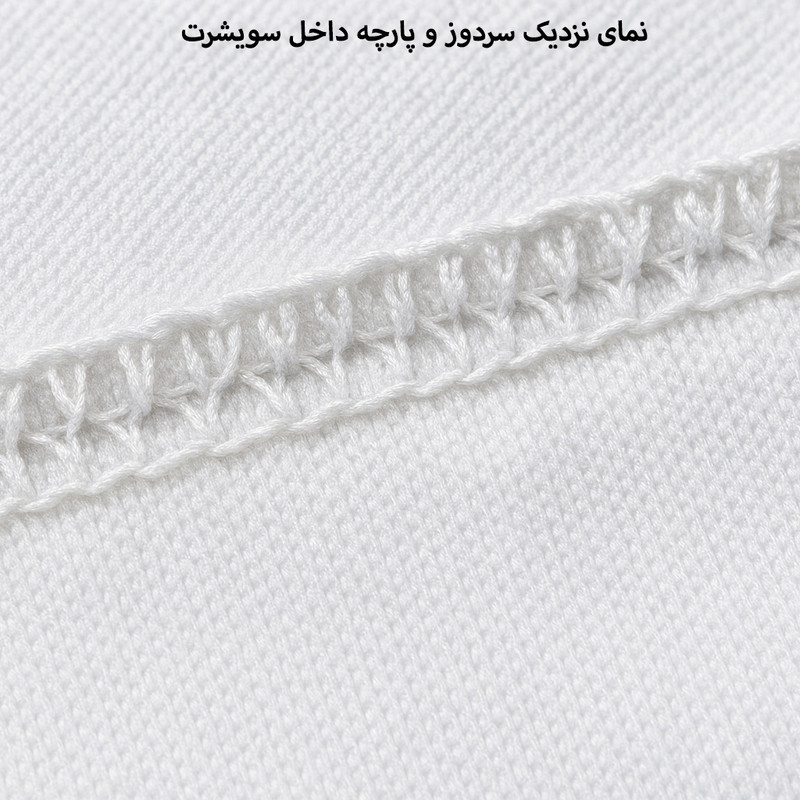 جنس سویشرت دورس اسپان درجه یک میباشد . قسمت روی سویشرت چاپ تزریقی فوق العاده با کیفیت میباشد (چاپ برجسته نیست بلکه داخل بافت پارچه تزریق شده) و به هیچ عنوان در اثر شستشو کنده ویا ترک ترک نمیشود. داخل پارچه سفید و بدون چاپ و رنگ میباشد. پارچه و چاپ کاملا دربرابر شست و شو مقاوم هستند