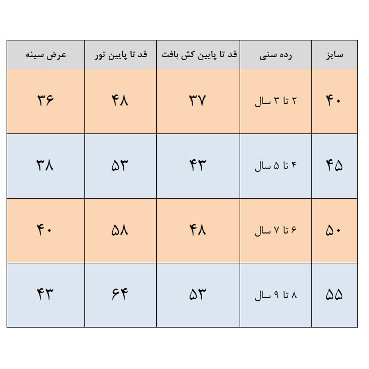 / زرد - 2 تا 3 سال / زرد - 4 تا 5 سال / سبز - 2 تا 3 سال / سرخابی - 4 تا 5 سال / سبز - 6 تا 7 سال