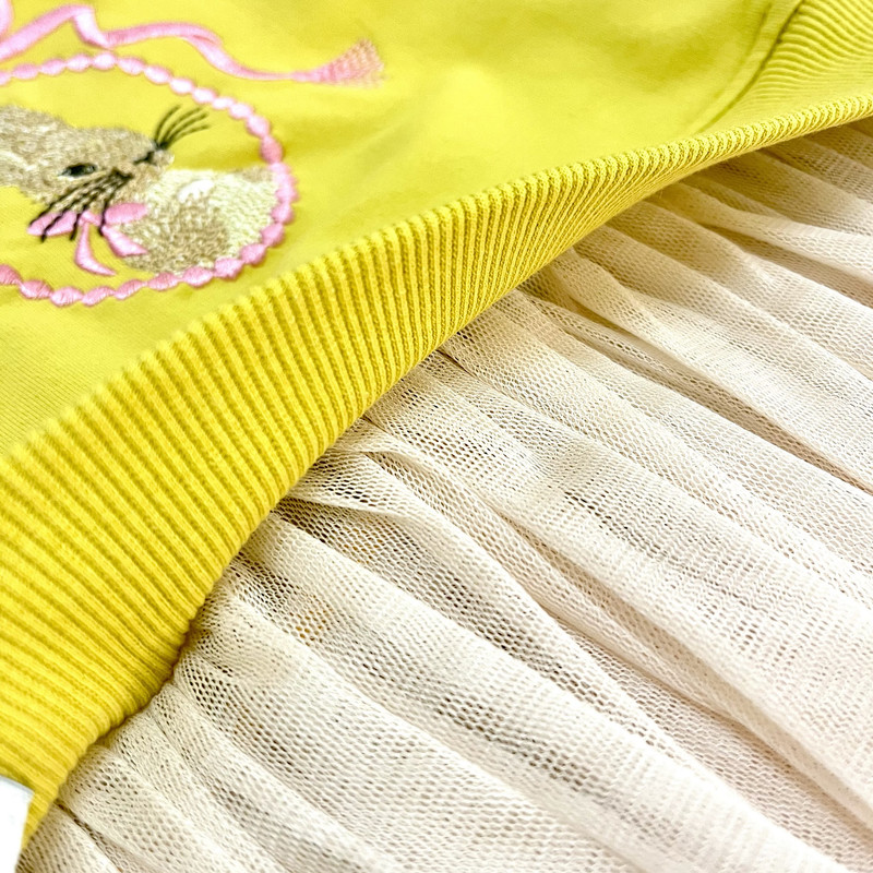 پیراهن دخترانه طرح خرگوش کوچولو از جنس دورس دونخ پنبه بسیار باکیفیت و تور تولید گردیده است. این لباس با طراحی بسیار خاص و زیبا مناسب استفاده به عنوان لباس بیرونی و مهمانی بوده و با جوراب شلواری به زیبایی ست میشود. کیفیت طراحی و چاپ و دوخت قابل رقابت با کارهای خارجی می باشد.