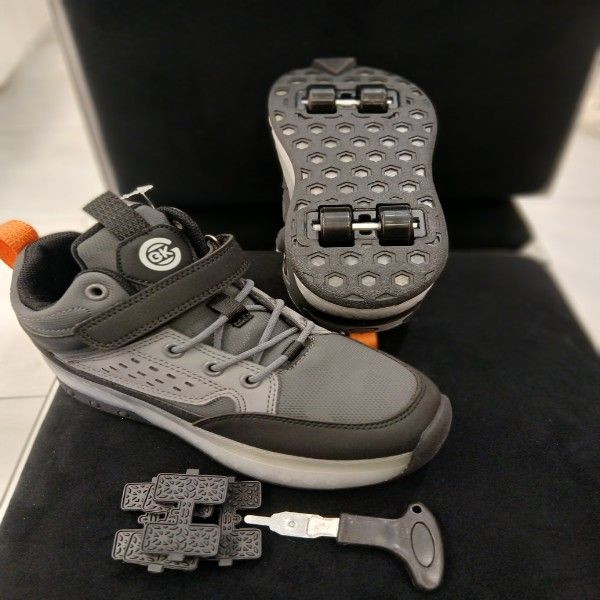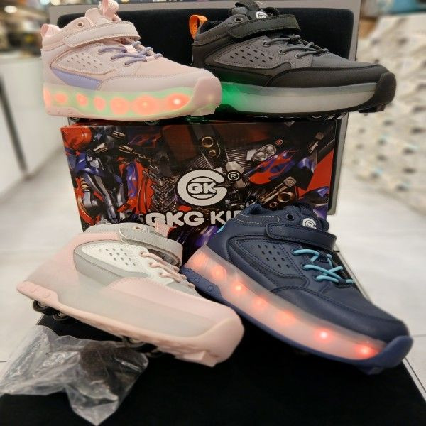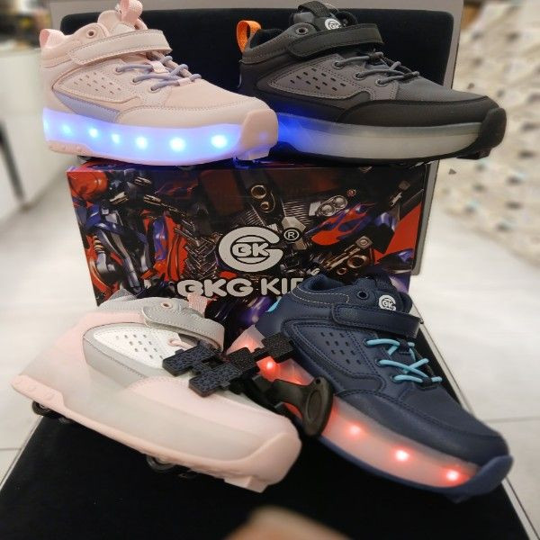 طراحی خاص با ۴ چرخ قابل نصب و تعویض به همراه آچار مخصوص و صفحه نصب حرفه ای میباشد مجهز به ۷ رنگ چراغ LED ثابت + ۴ حالت رقص نور RGB برای جذاب ترین تجربه اسکییت میباشد سطح کفش higher quality و زیرکفش رابر با تزریق pvc سبک میباشد که باعث سبکی و بادوام بودن کفش میشود.دارای هارد باکس و ساک دستی شیک برای حمل راحت کفش و لوازم جانبی میباشد ترکیب جذاب کفش و اسکیت - چراغ های فانتزی در یک محصول داخل بسته: کفش اسکیتی و ۴ چرخ و آچار مخصوص و سیم شارژ و صفحه نصب و ساک دستی و جعبه مخصوص BKG KIDS است