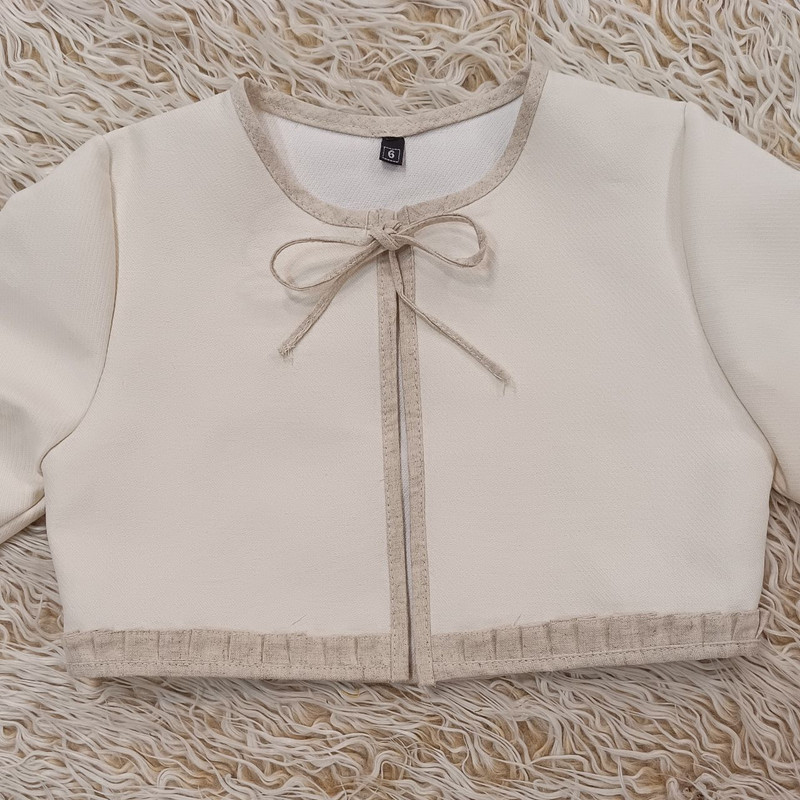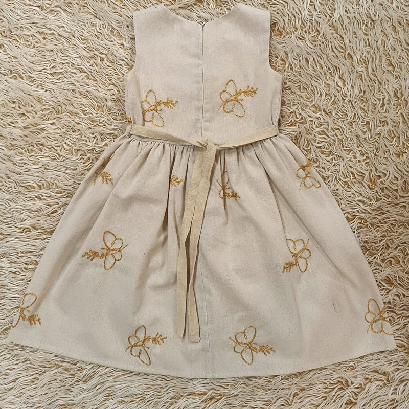 ست کت سارافون دخترانه با جنس کاملا نخ خدمت شما عزیزان ارائه میشود..سارافون لنین گلدوزی شده با پروانه های زیبا و شاین دار و کت کتان ، نخ اعلا به رنگ شیری می باشد.سارافون دو بند تنظیم دارد که در پشت به صورت گره یا پاپیون می توانید تزئین کنید.کت آن ساده طراحی شده تا شاید با لباسهای دیگر دلبندتان ست شود.روی سر آستین ها و پایین کت با پارچه نخودی رنگ به صورت پلیسه تزئین شده و دور تا دور یقه و جلوی کت با همان رنگ نخودی نوار دوزی شده.سارافون کاملا استر دوزی با جنس نخ خالص دارد .