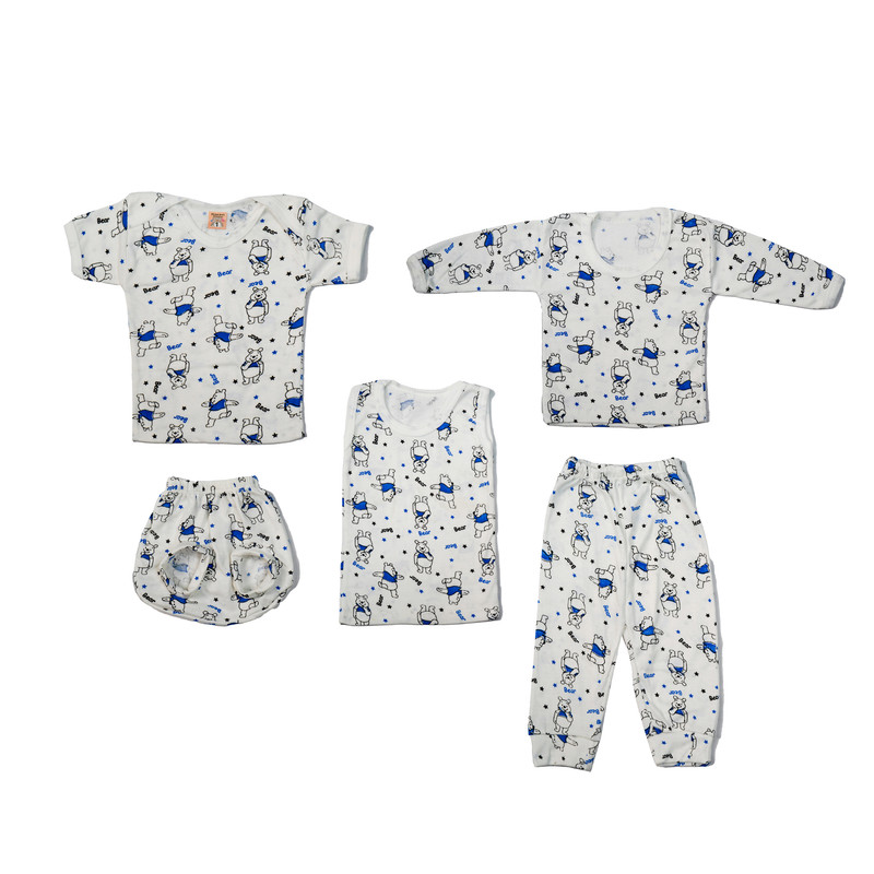 ست تی شرت و شلوار نوزادی با پارچه کاملا پنبه ای بدون حساسیت زا میباشد و مناسب برای پوست نوزادان دلبند شما میباشد چاپ مقاوم و عالی در مقابل شستشو زیبایی خاصی به این کار بخشیده است و سایزبندی در 6 شماره از بدو تولد تا دوسالگی میباشد.
