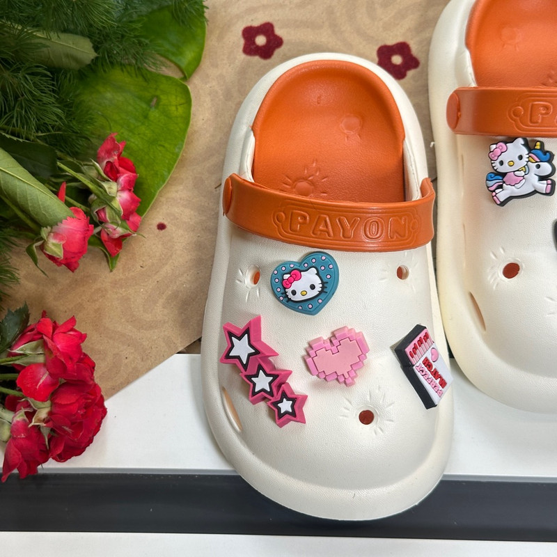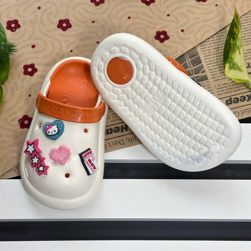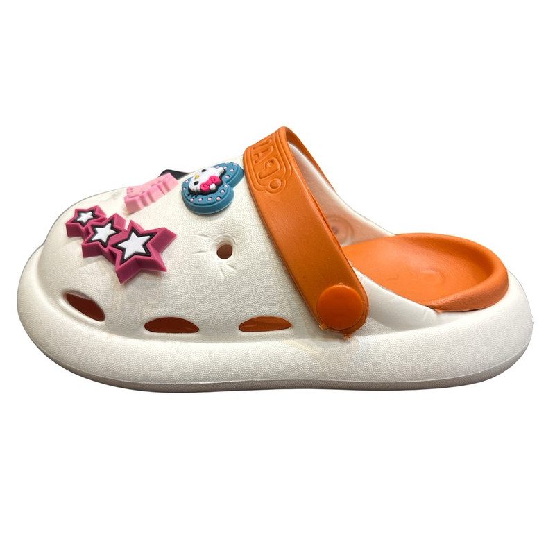 صندل دخترانه مدل جلوبسته رکابدار از متریال EVA تولید شده است لذا بسیار نرم و سبک و انعطاف پذیر است. در قسمت داخلی یک کفی ضخیم بسیار نرم و ژله ای که قابلیت جدا شدن از صندل را دارد کار شده است. جیبتزهای روی محصول غیر ثابت است و میتوانید آنها را به سلیقه خودتان بر روی محصول جابجا نموده و یا کم و زیاد کنید. قالب این محصول استانداد است و میتوانید مطابق با سایز کفش شهری خود بهترین سایز را برای خودتان انتخاب کنید البته در نظر داشته باشید این مدل دمپایی ها کمی در پا آزاد هستند.این مدل کراکس به دلیل داشتن جیبیتز های جذاب بسیار مورد علاقه کودکان هست.