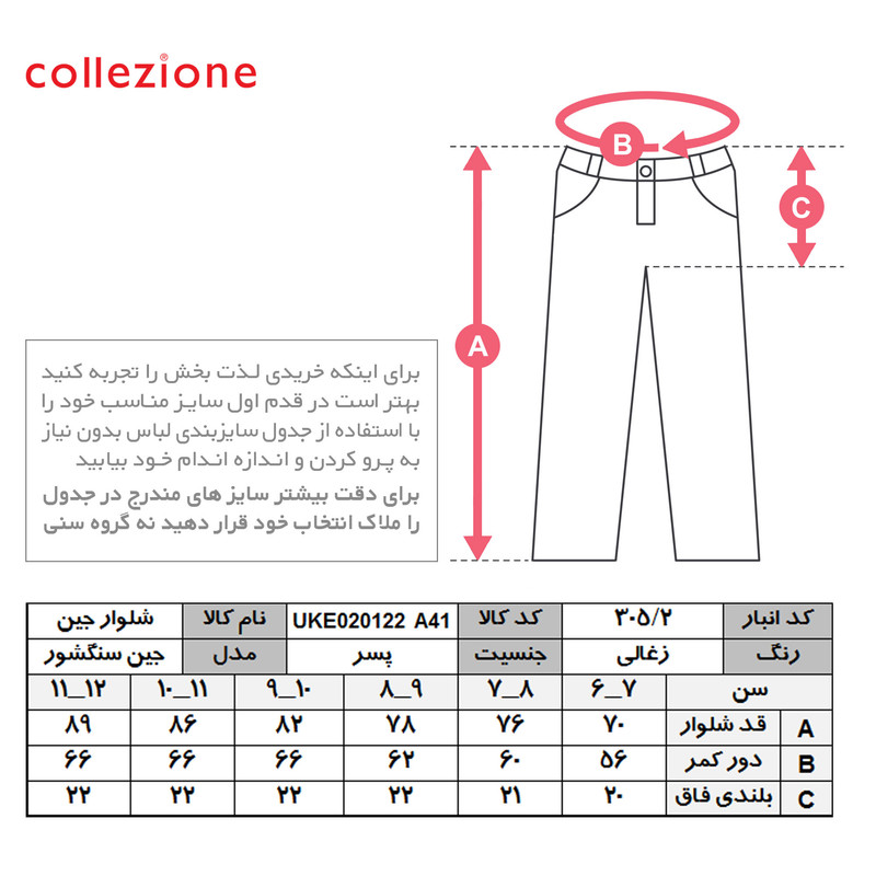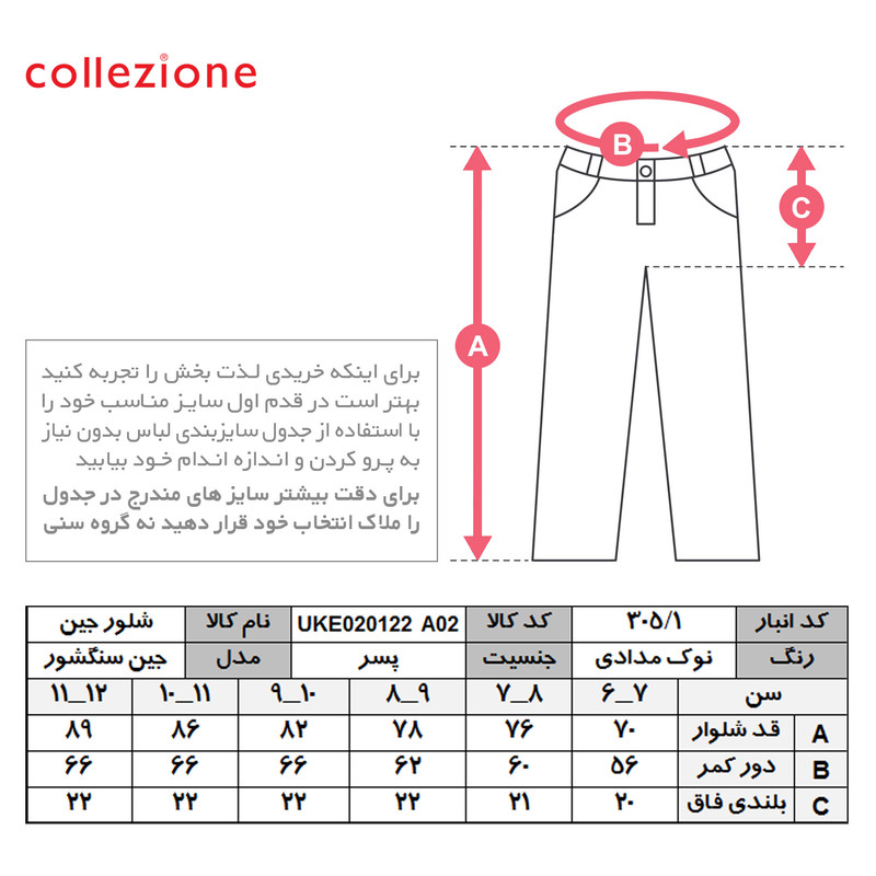 جنس پارچه شلوار جین کلاسیک زیبا و شکیل از برند کولزیون، از الیاف طبیعی تهیه شده که برای پوست فرزند دلبندتان حساسیت ایجاد نخواهد کرد. لازم به ذکراست که پوشاک کولزیون در کشور ترکیه تولید می گردد. این شلوار لی آبی طیفی زیبا در اثرشستشو تغییر رنگ نمی دهد و پرز پرز نمی شود.